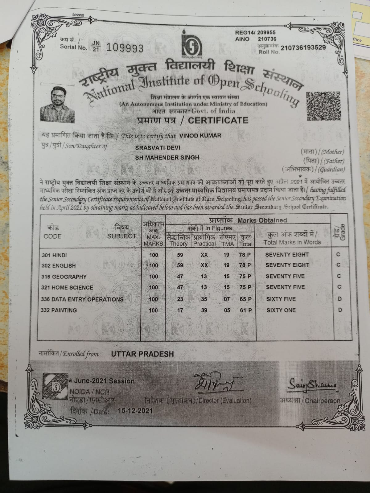 | Exam | Full Marks | Pass Marks | Marks Obtained |
