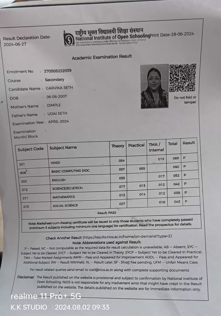 | Exam | Full Marks | Pass Marks | Marks Obtained |