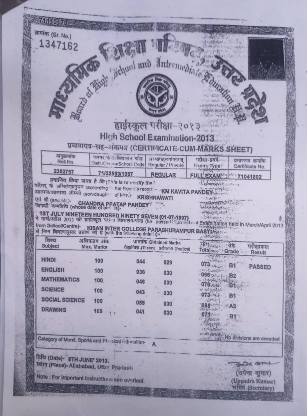| Exam | Full Marks | Pass Marks | Marks Obtained |