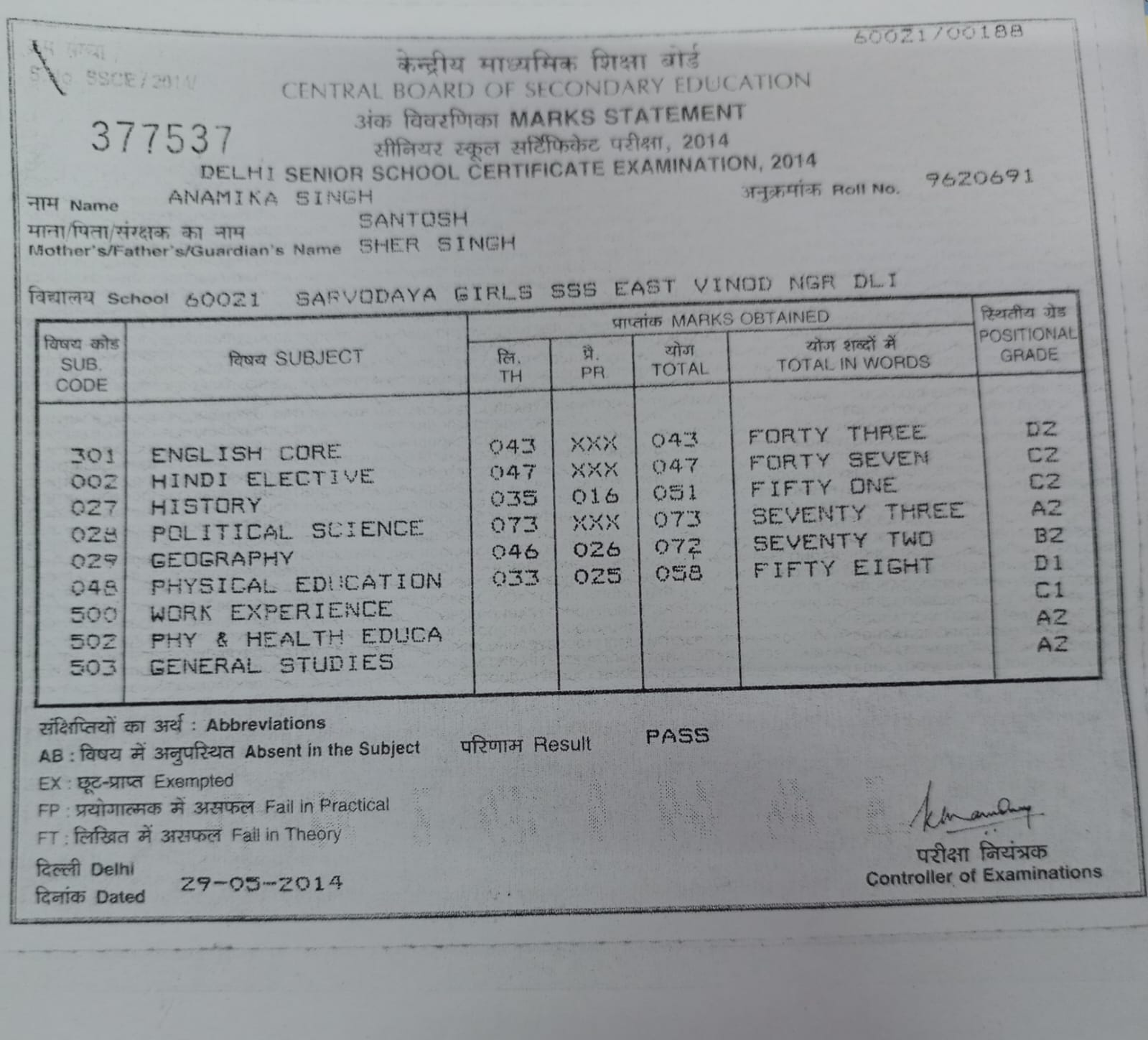 | Exam | Full Marks | Pass Marks | Marks Obtained |