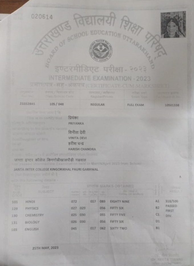 | Exam | Full Marks | Pass Marks | Marks Obtained |