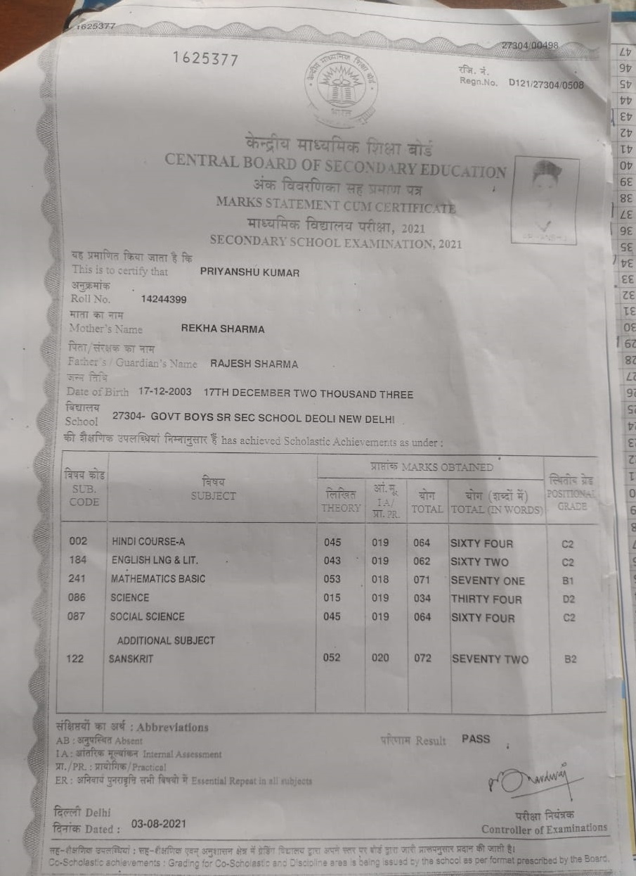 | Exam | Full Marks | Pass Marks | Marks Obtained |