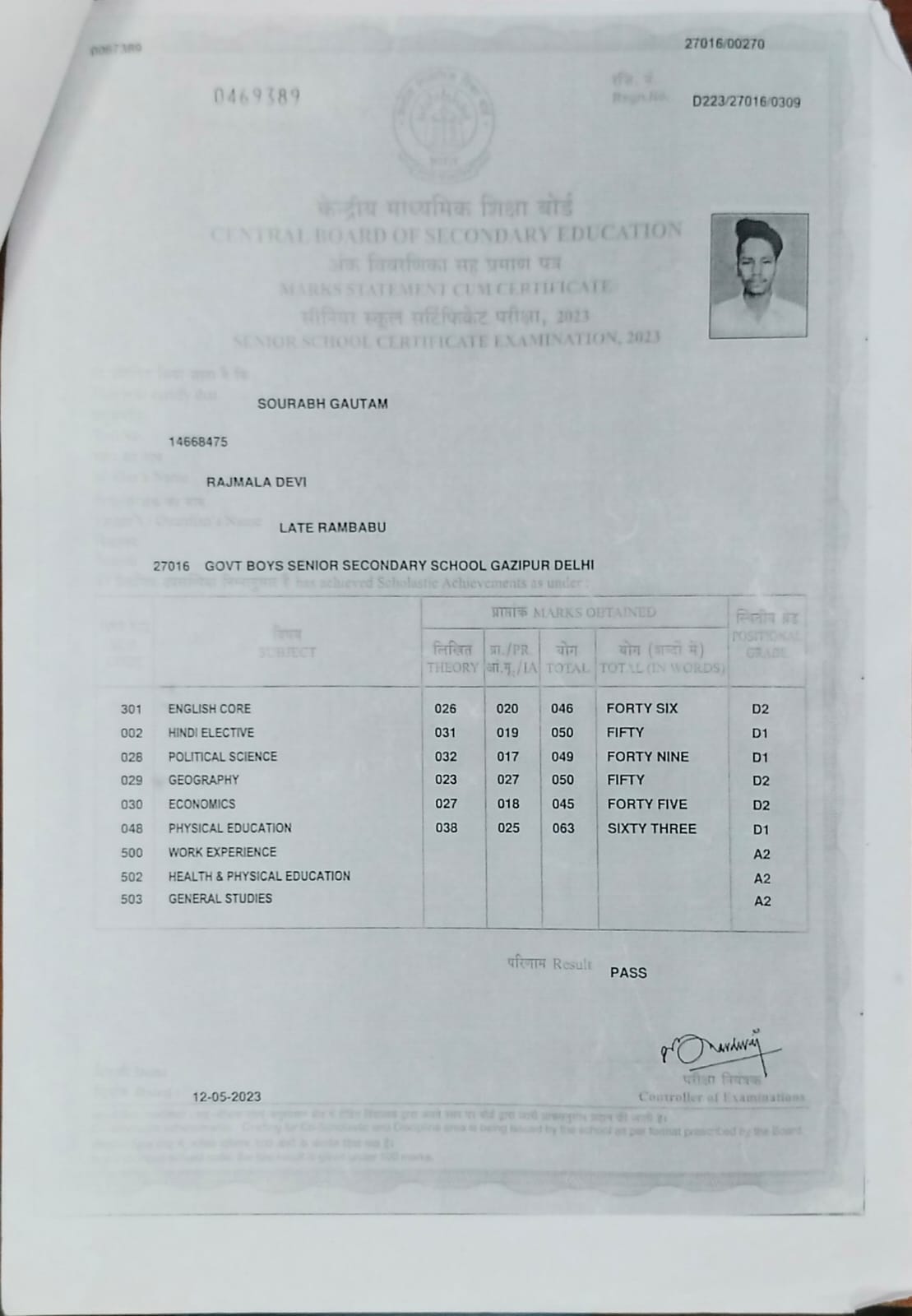 | Exam | Full Marks | Pass Marks | Marks Obtained |