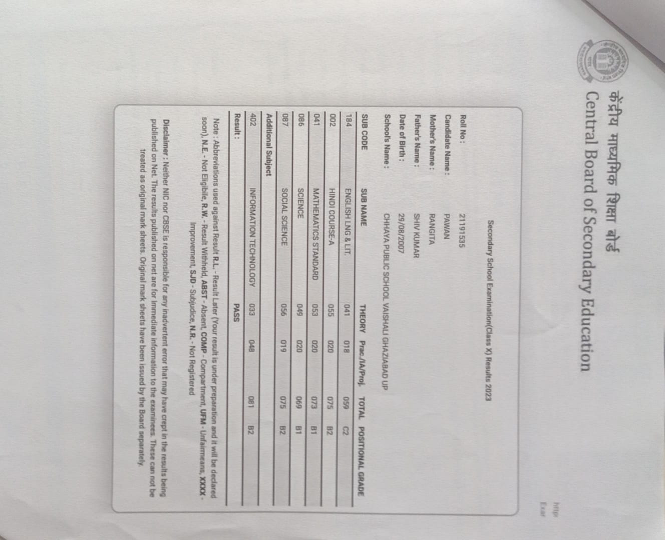 | Exam | Full Marks | Pass Marks | Marks Obtained |