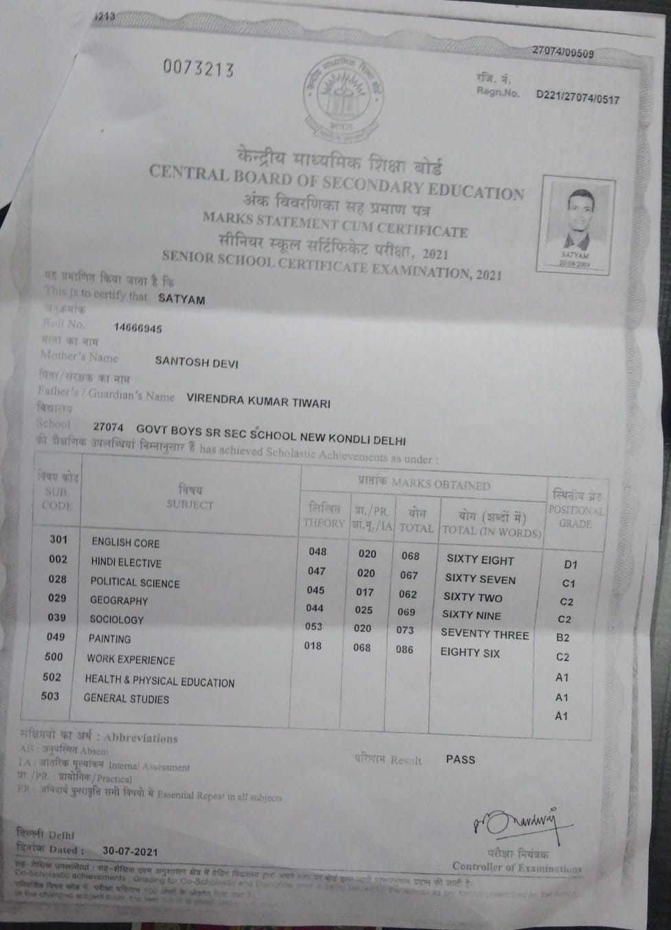 | Exam | Full Marks | Pass Marks | Marks Obtained |