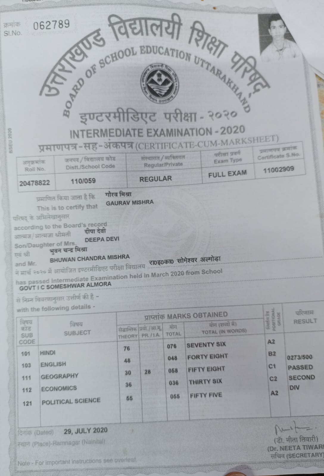 | Exam | Full Marks | Pass Marks | Marks Obtained |