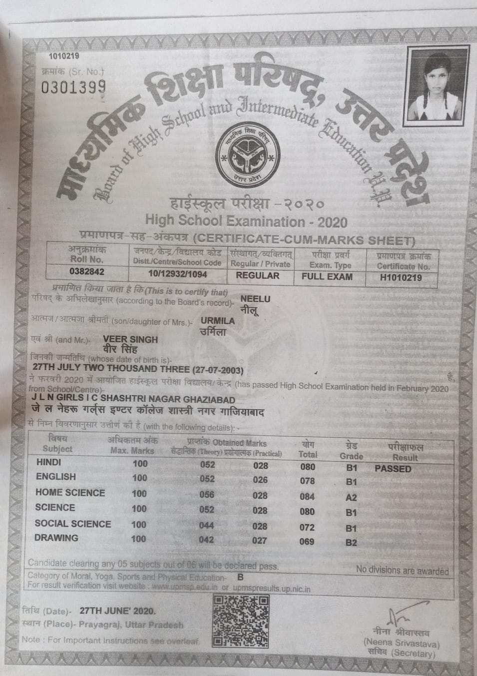 | Exam | Full Marks | Pass Marks | Marks Obtained |