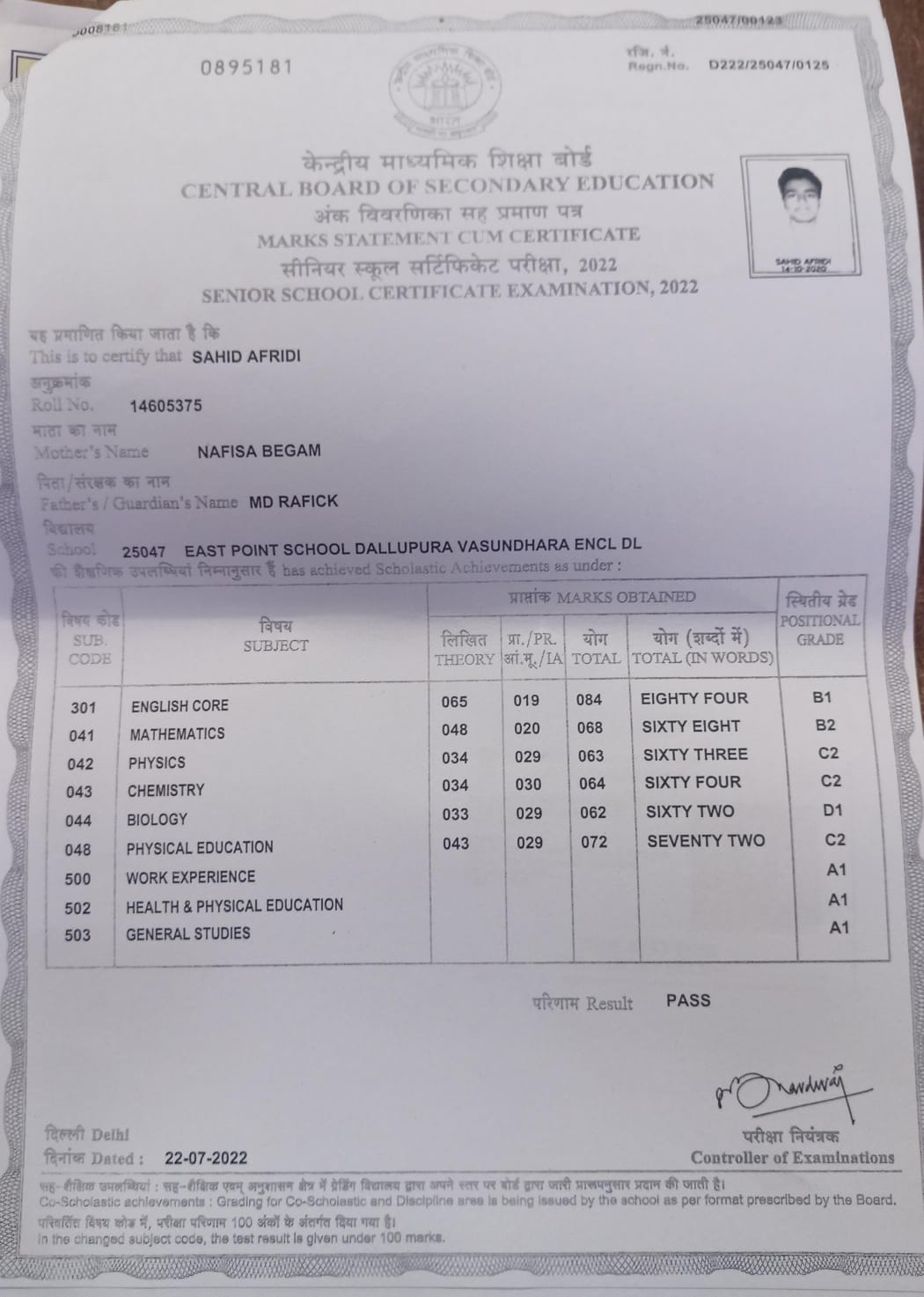 | Exam | Full Marks | Pass Marks | Marks Obtained |