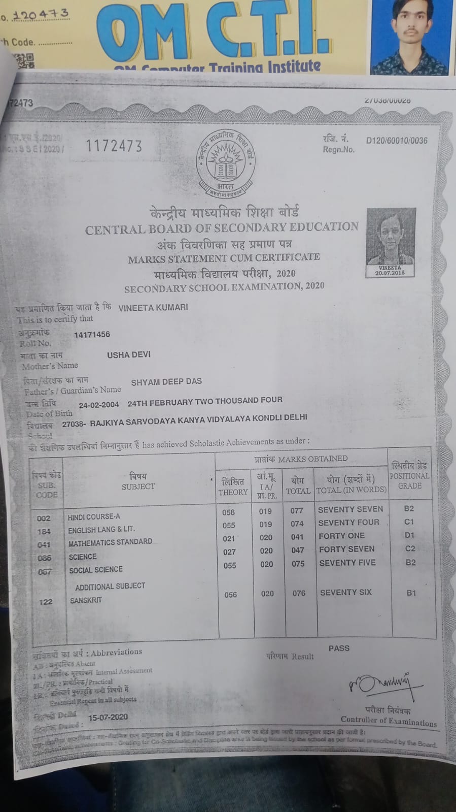 | Exam | Full Marks | Pass Marks | Marks Obtained |