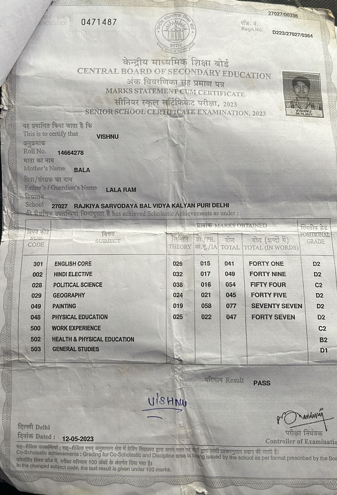 | Exam | Full Marks | Pass Marks | Marks Obtained |