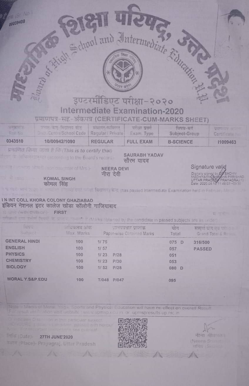 | Exam | Full Marks | Pass Marks | Marks Obtained |