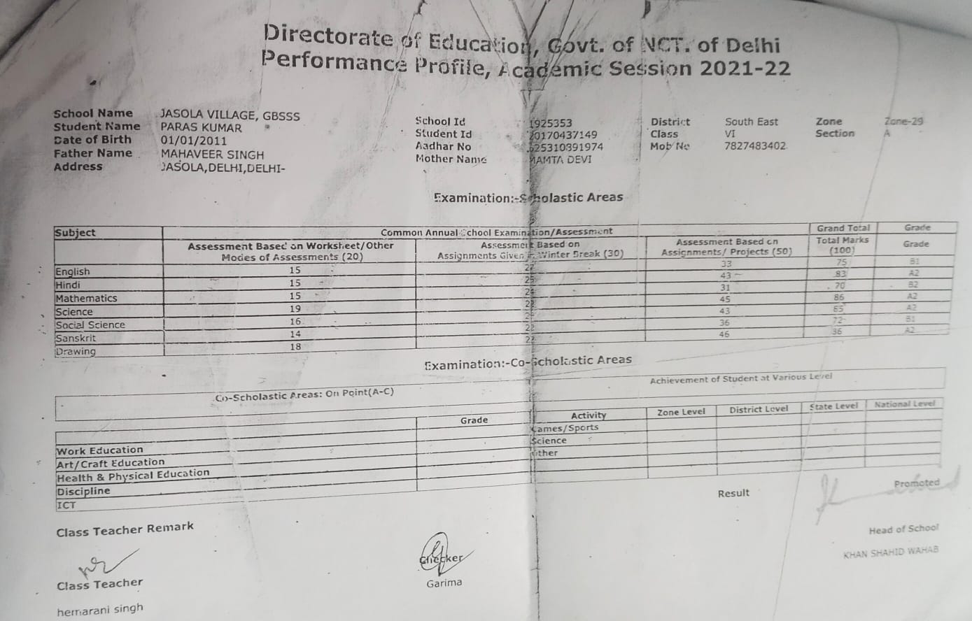 | Exam | Full Marks | Pass Marks | Marks Obtained |