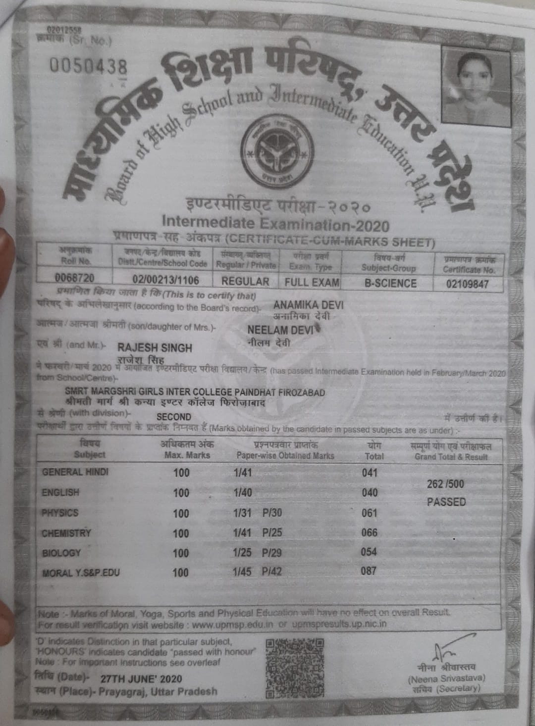 | Exam | Full Marks | Pass Marks | Marks Obtained |