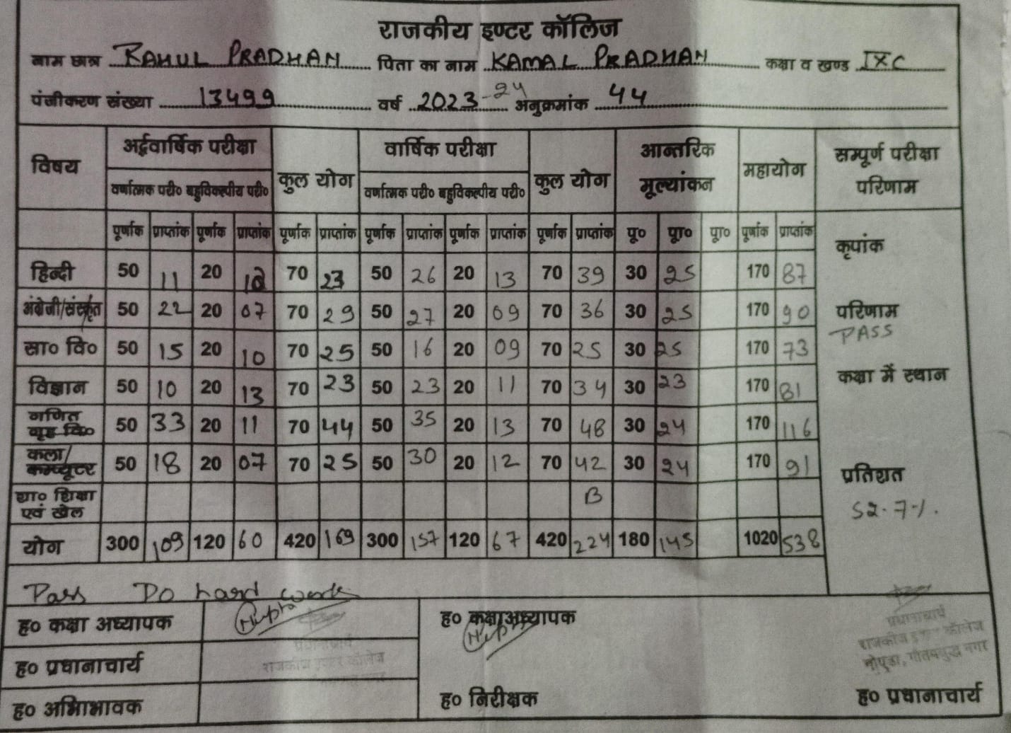 | Exam | Full Marks | Pass Marks | Marks Obtained |