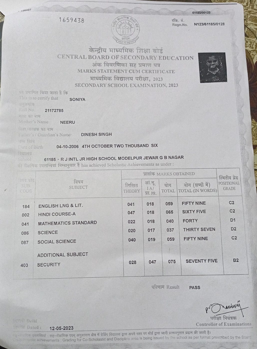 | Exam | Full Marks | Pass Marks | Marks Obtained |