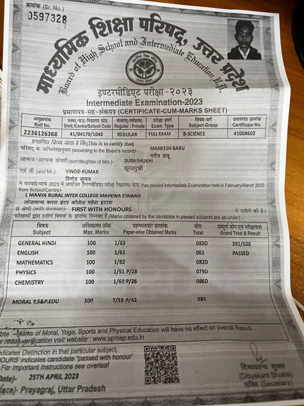 | Exam | Full Marks | Pass Marks | Marks Obtained |