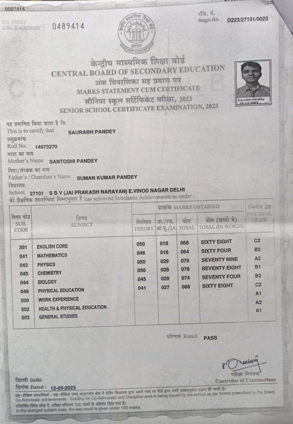 | Exam | Full Marks | Pass Marks | Marks Obtained |