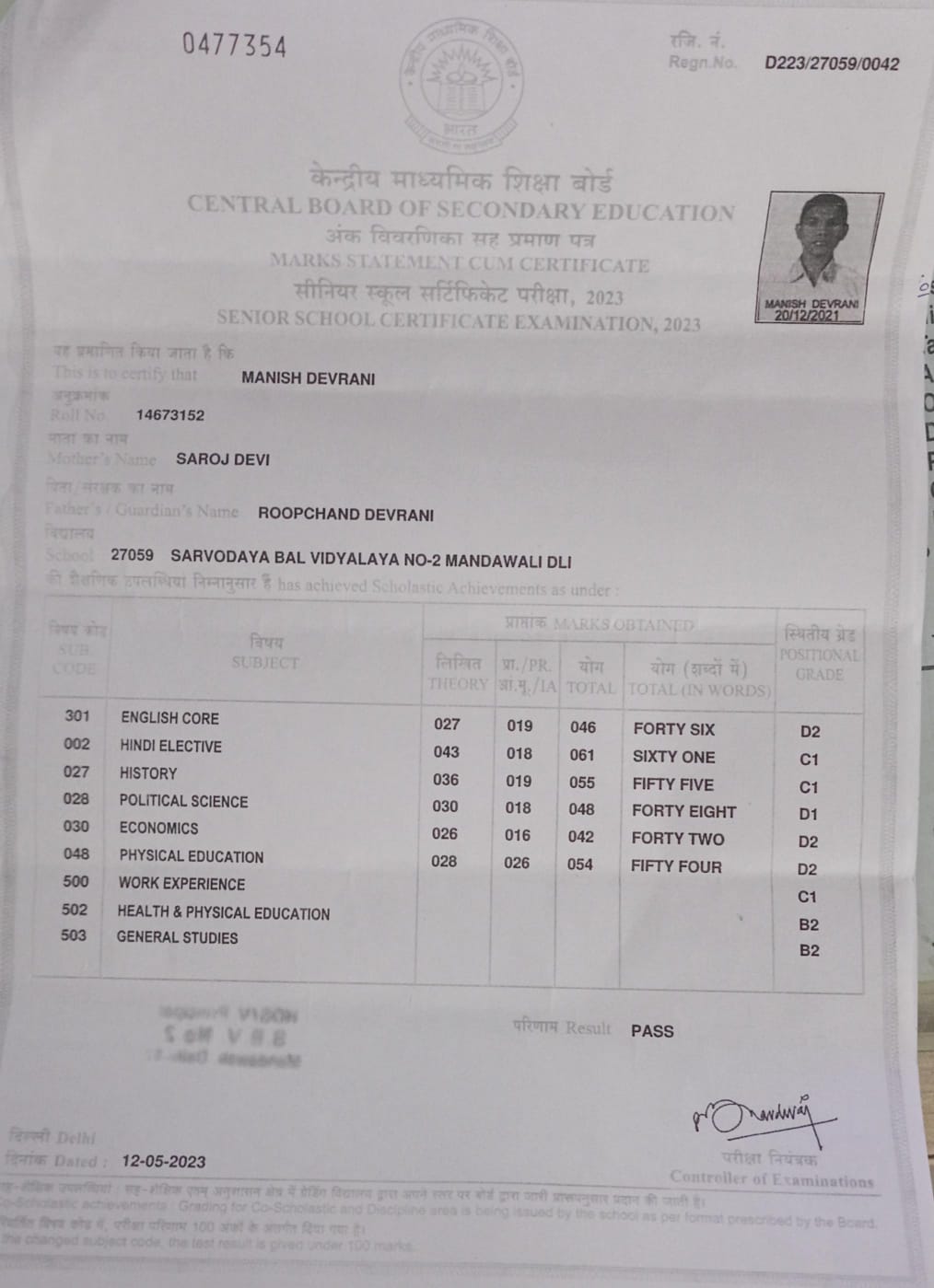| Exam | Full Marks | Pass Marks | Marks Obtained |
