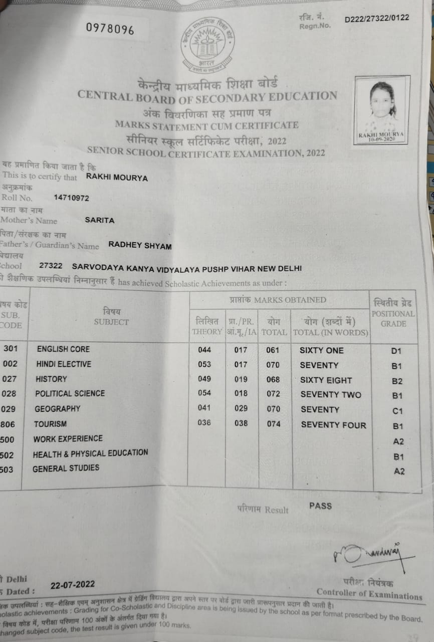 | Exam | Full Marks | Pass Marks | Marks Obtained |