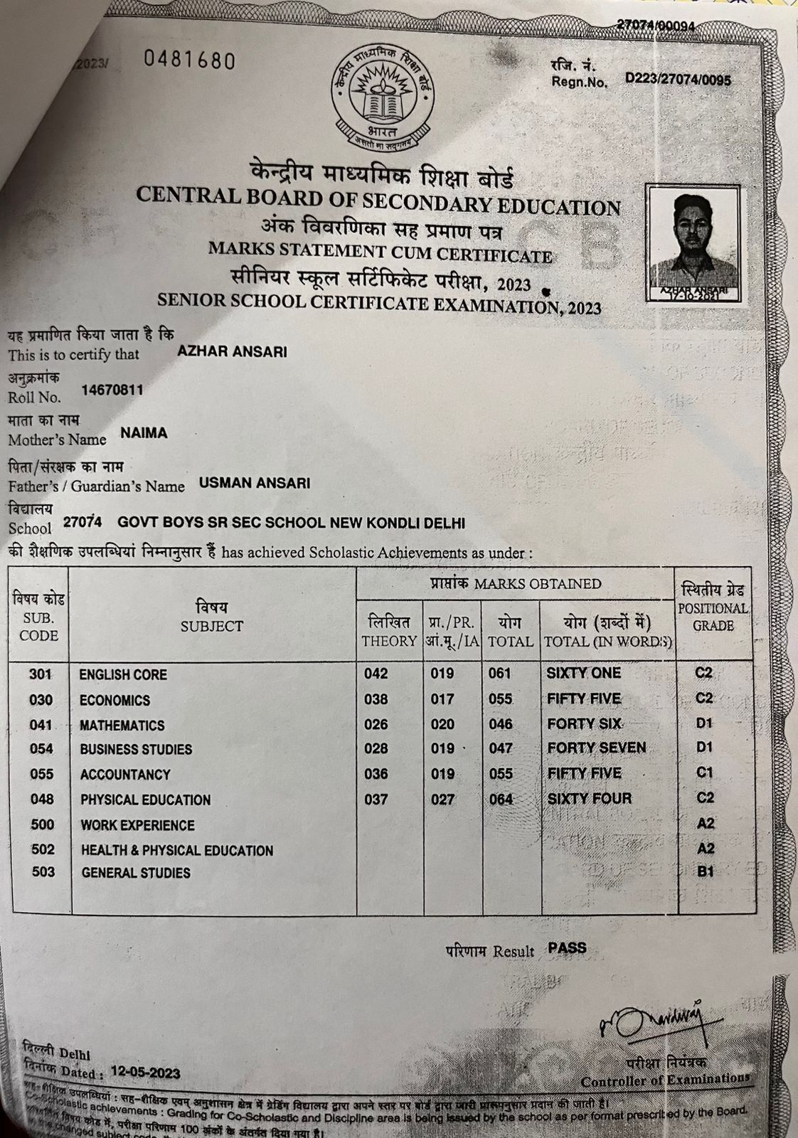 | Exam | Full Marks | Pass Marks | Marks Obtained |