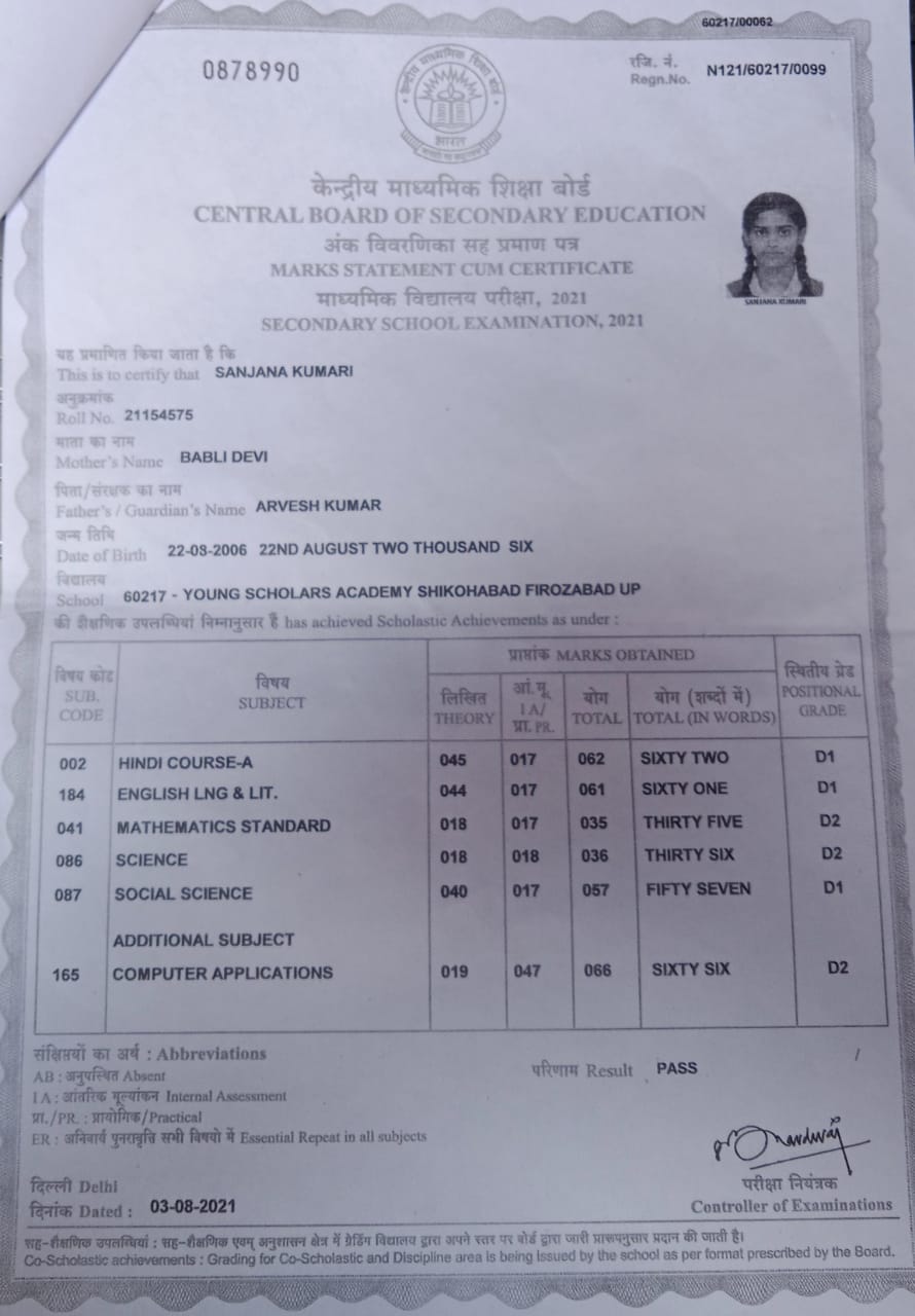 | Exam | Full Marks | Pass Marks | Marks Obtained |