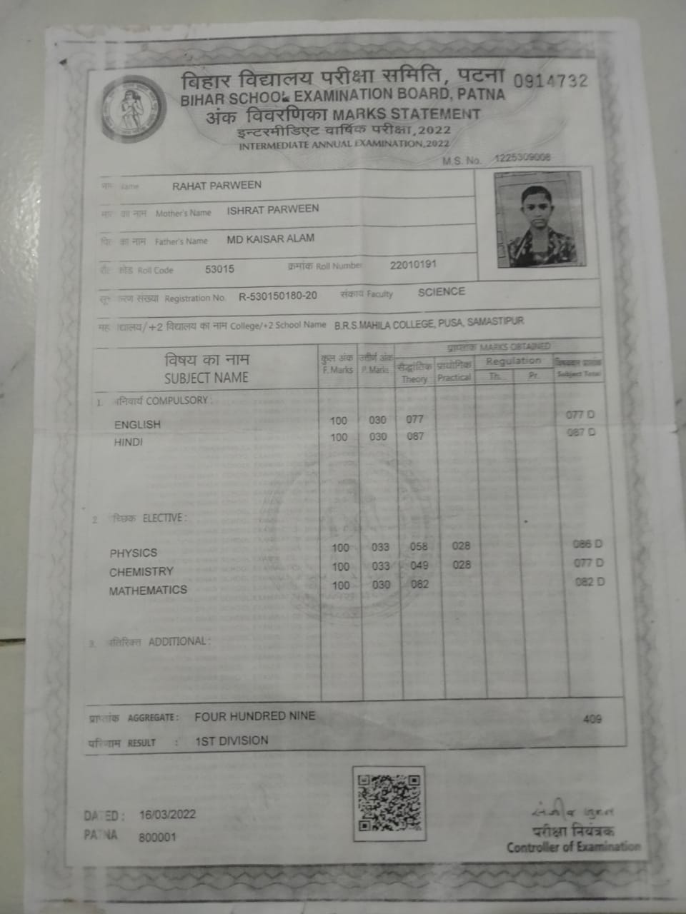 | Exam | Full Marks | Pass Marks | Marks Obtained |
