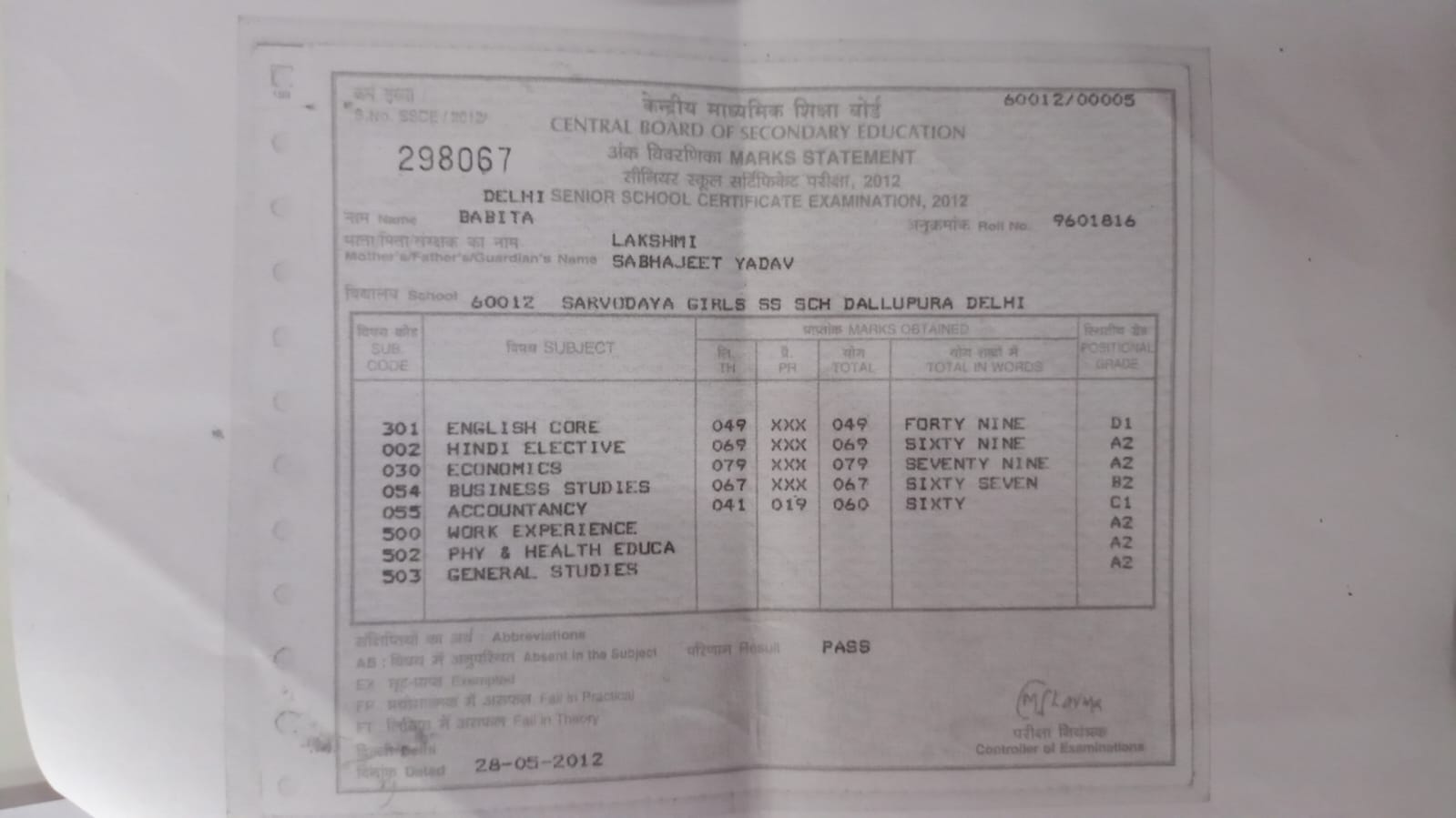 | Exam | Full Marks | Pass Marks | Marks Obtained |