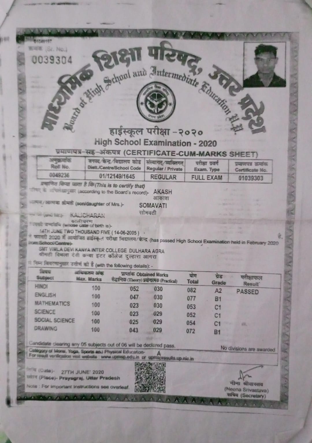 | Exam | Full Marks | Pass Marks | Marks Obtained |