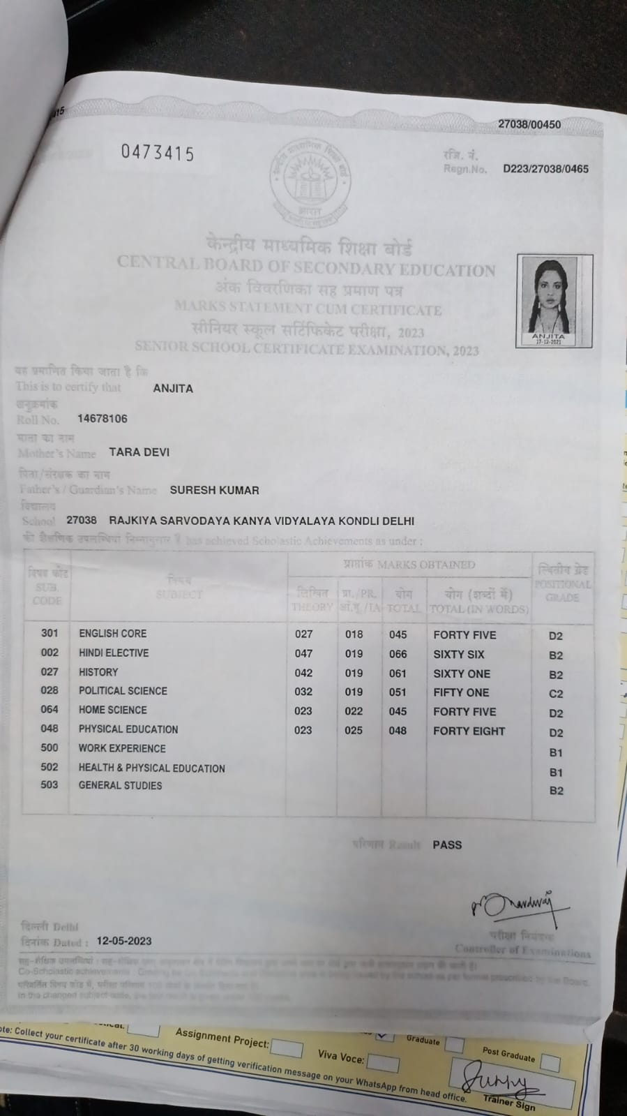 | Exam | Full Marks | Pass Marks | Marks Obtained |