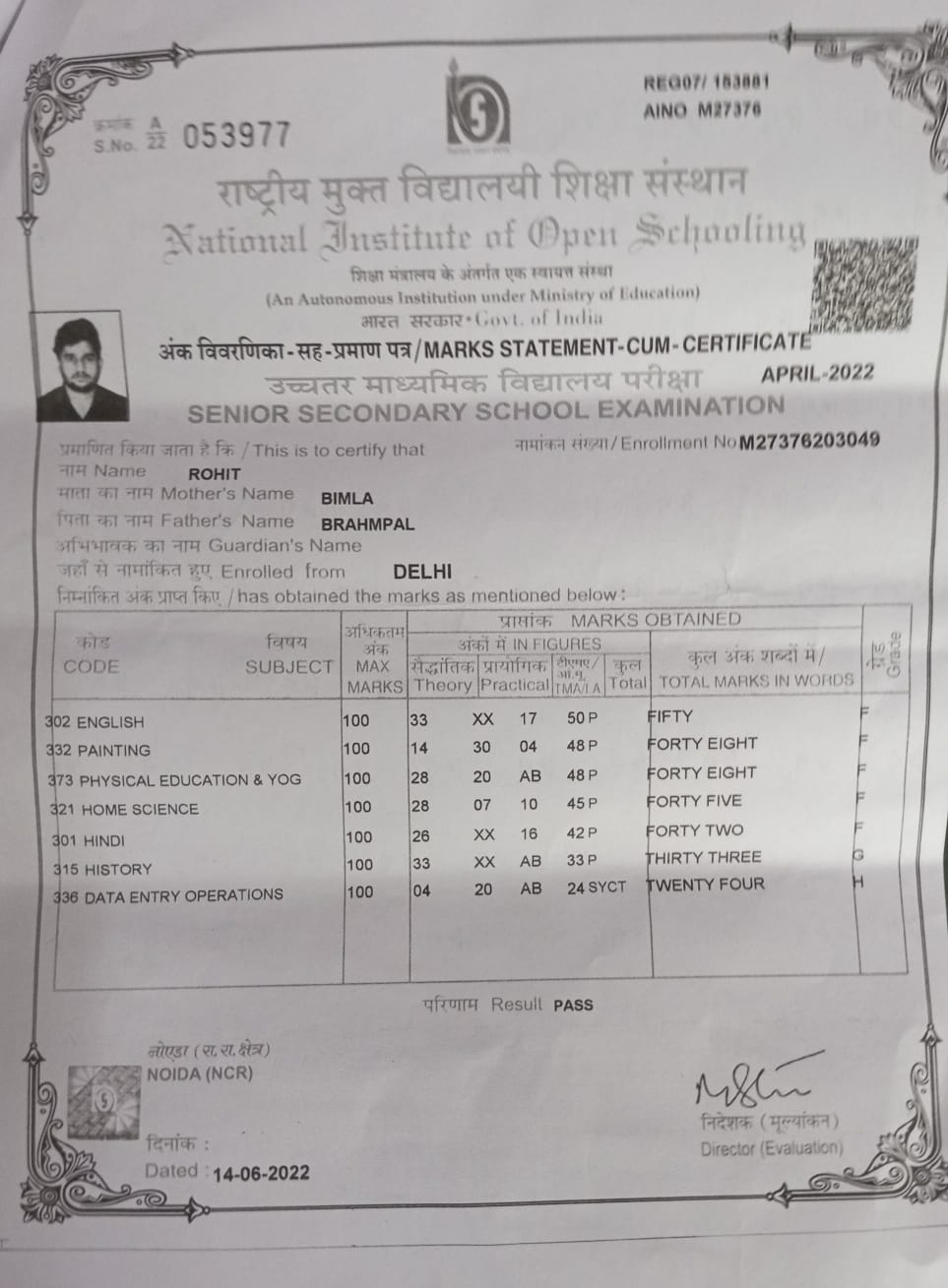 | Exam | Full Marks | Pass Marks | Marks Obtained |