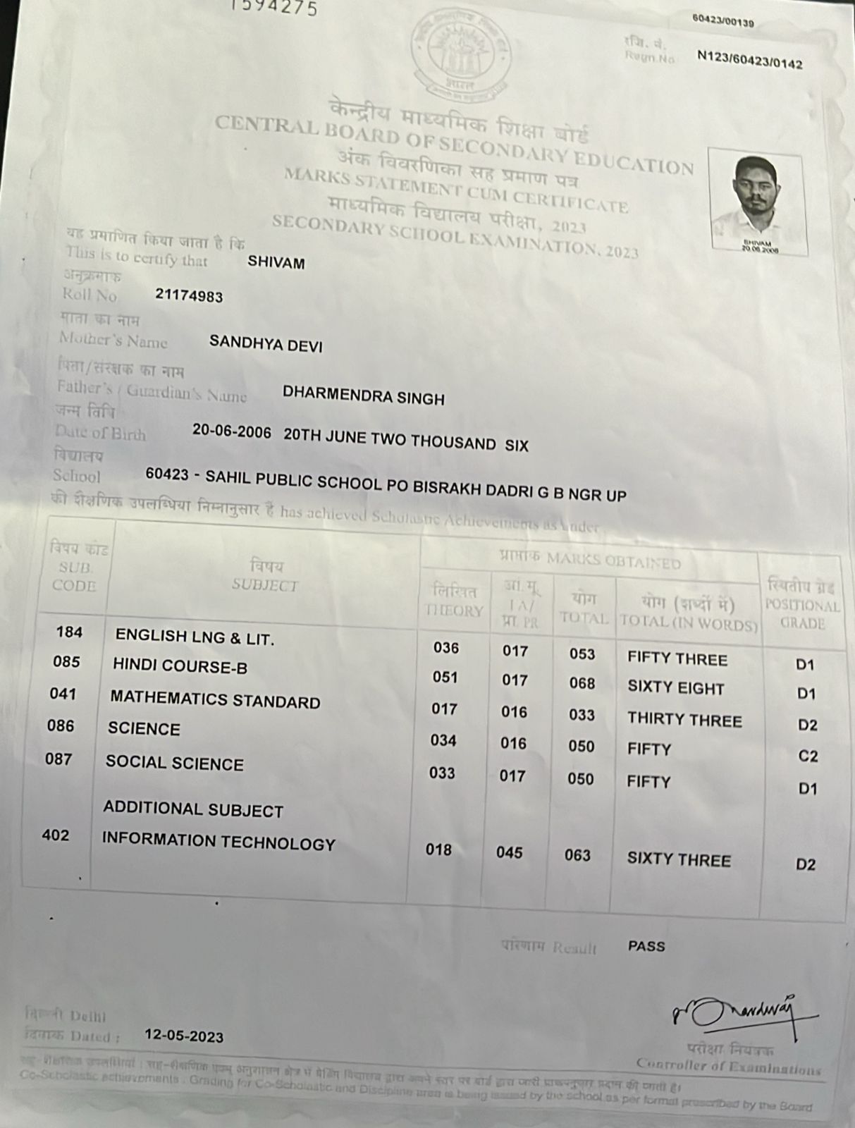 | Exam | Full Marks | Pass Marks | Marks Obtained |