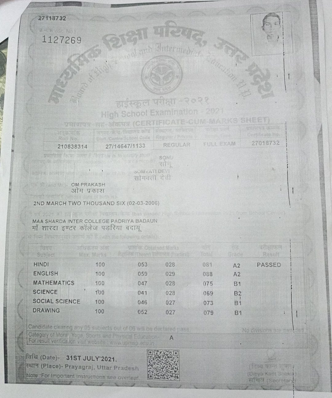 | Exam | Full Marks | Pass Marks | Marks Obtained |