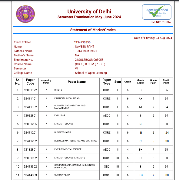 | Exam | Full Marks | Pass Marks | Marks Obtained |