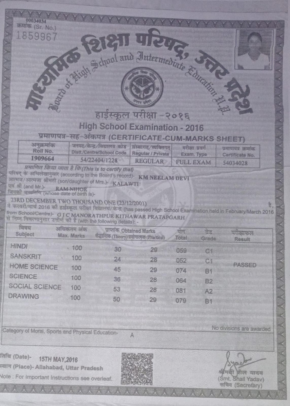 | Exam | Full Marks | Pass Marks | Marks Obtained |