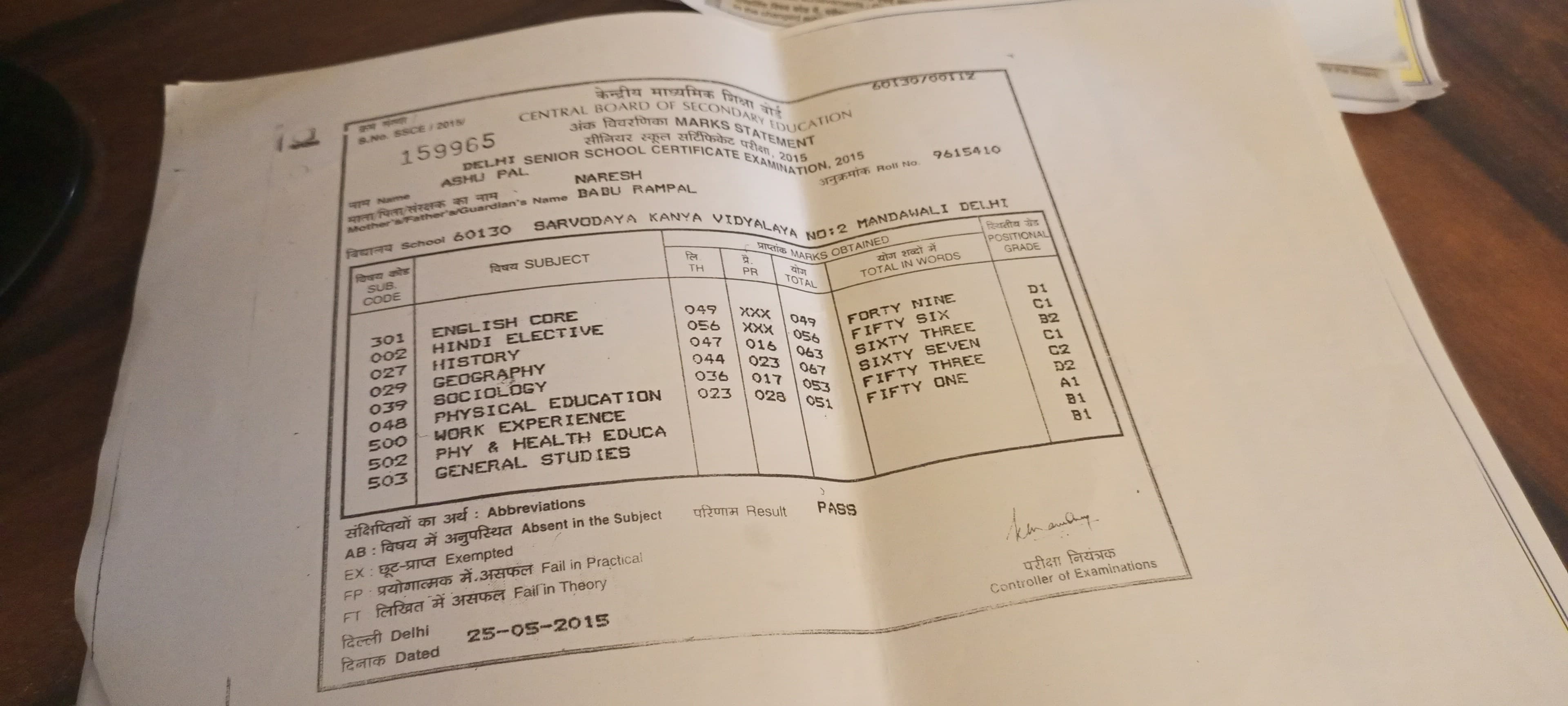 | Exam | Full Marks | Pass Marks | Marks Obtained |