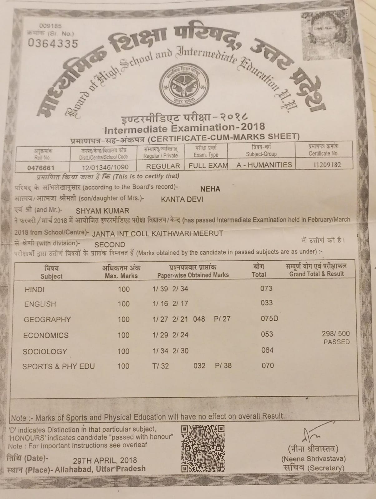 | Exam | Full Marks | Pass Marks | Marks Obtained |