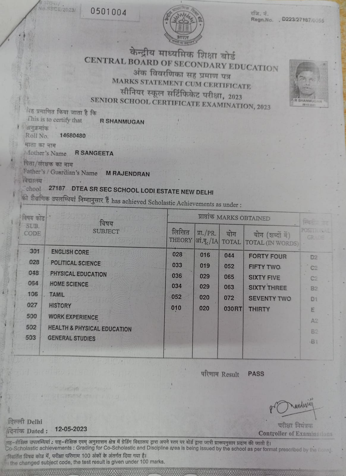 | Exam | Full Marks | Pass Marks | Marks Obtained |