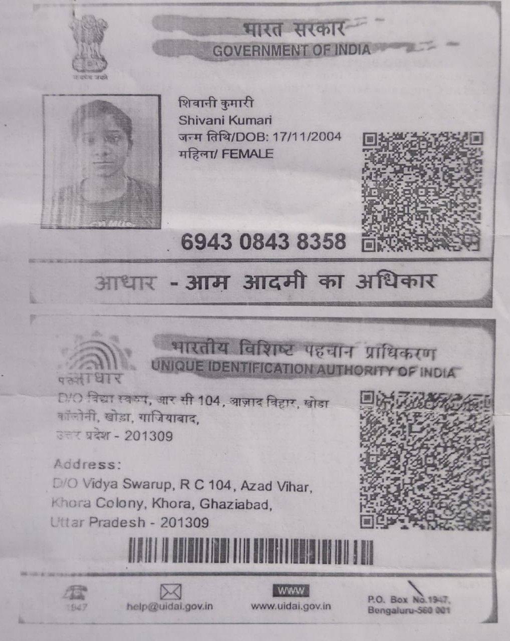 | : | Anil Vihar, Khora Colony, Ghaziabad | |