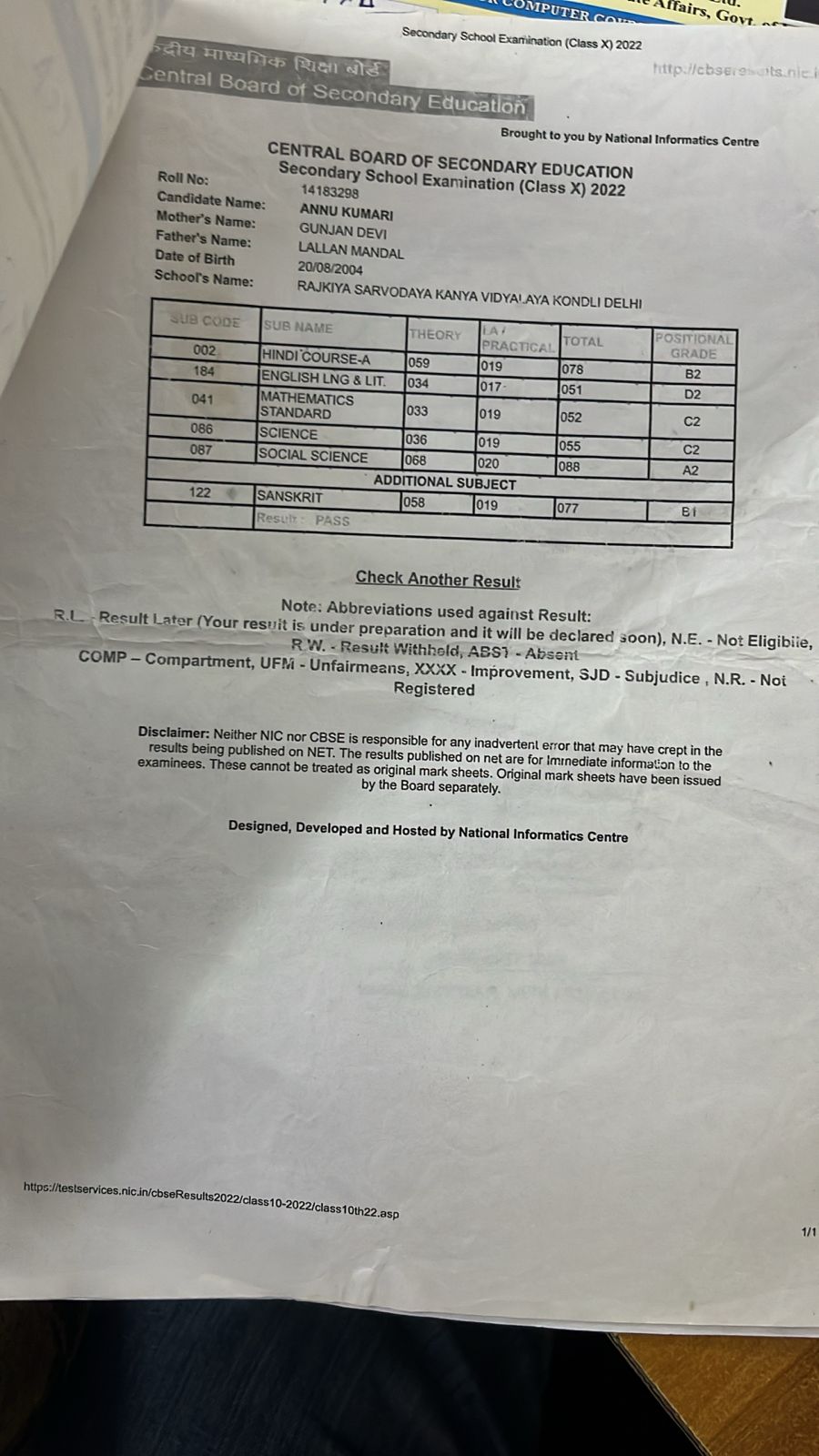 | Exam | Full Marks | Pass Marks | Marks Obtained |