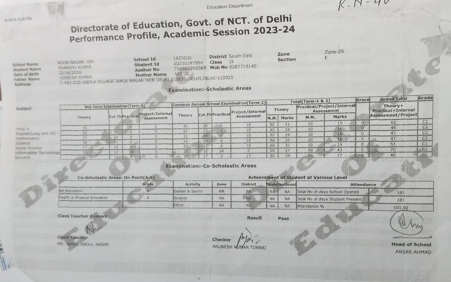 | Exam | Full Marks | Pass Marks | Marks Obtained |