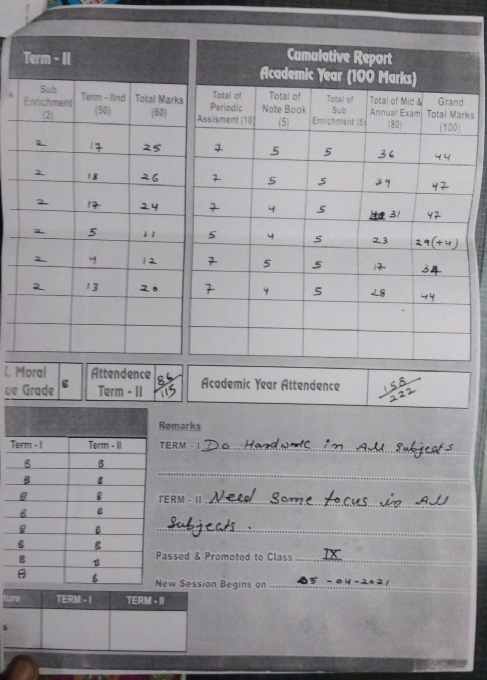 | Exam | Full Marks | Pass Marks | Marks Obtained |