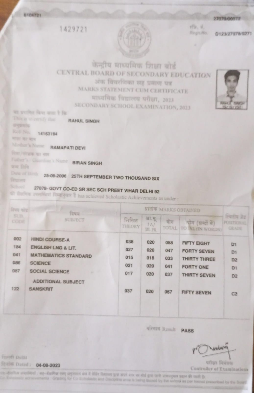 | Exam | Full Marks | Pass Marks | Marks Obtained |