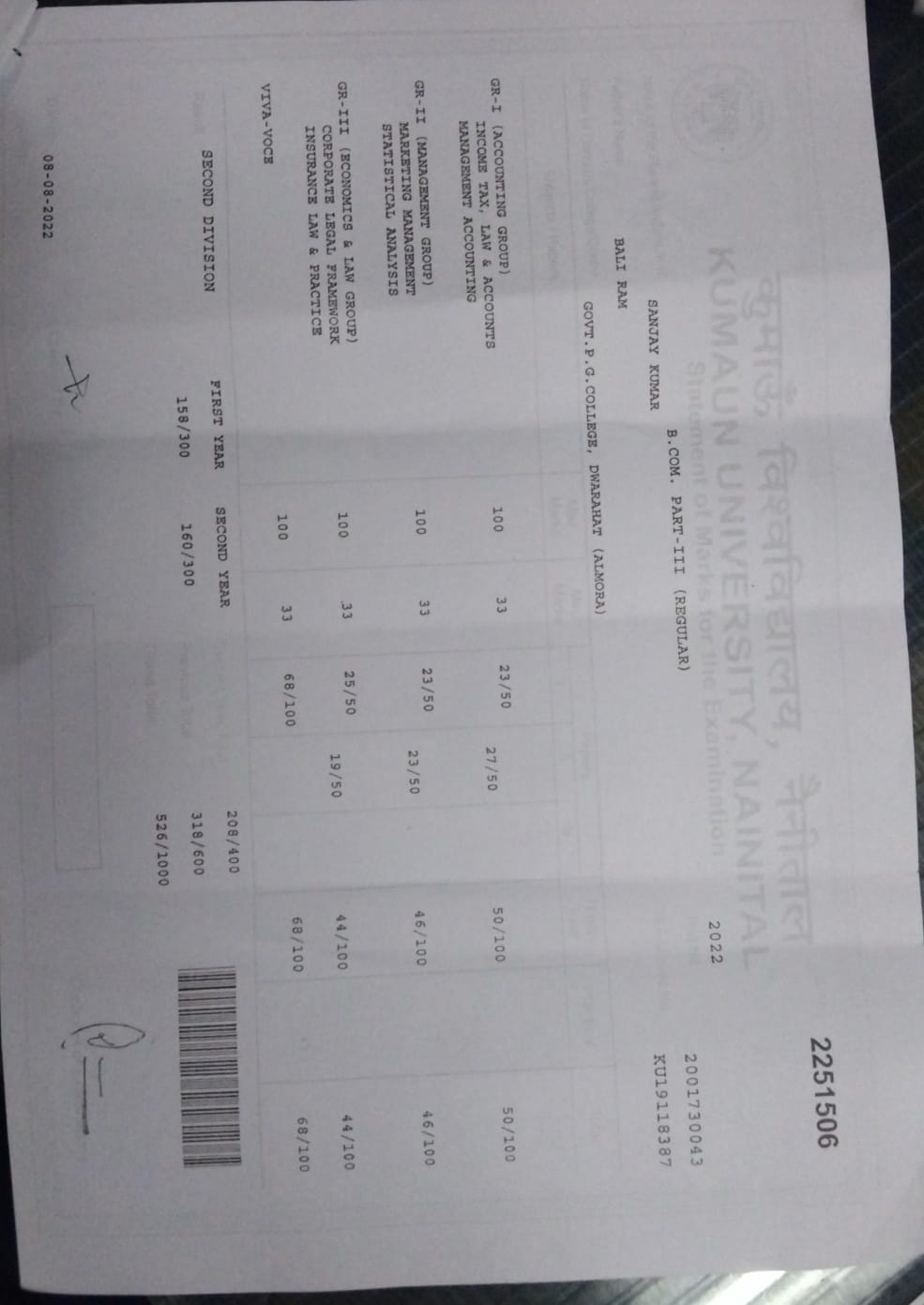| Exam | Full Marks | Pass Marks | Marks Obtained |