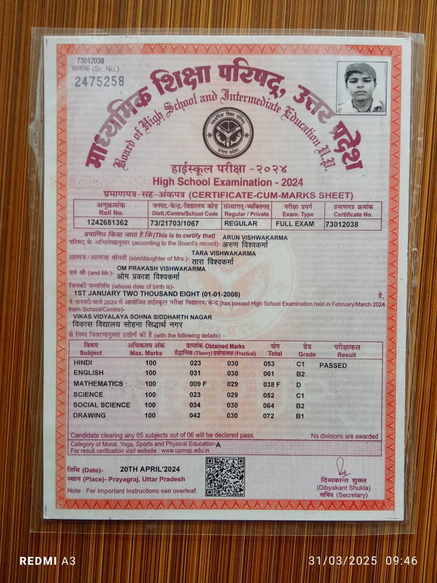 | Exam | Full Marks | Pass Marks | Marks Obtained |