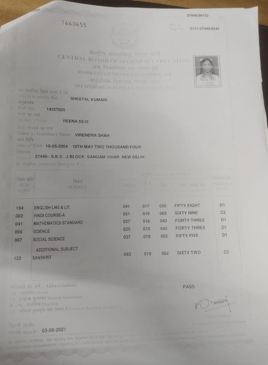 | Exam | Full Marks | Pass Marks | Marks Obtained |