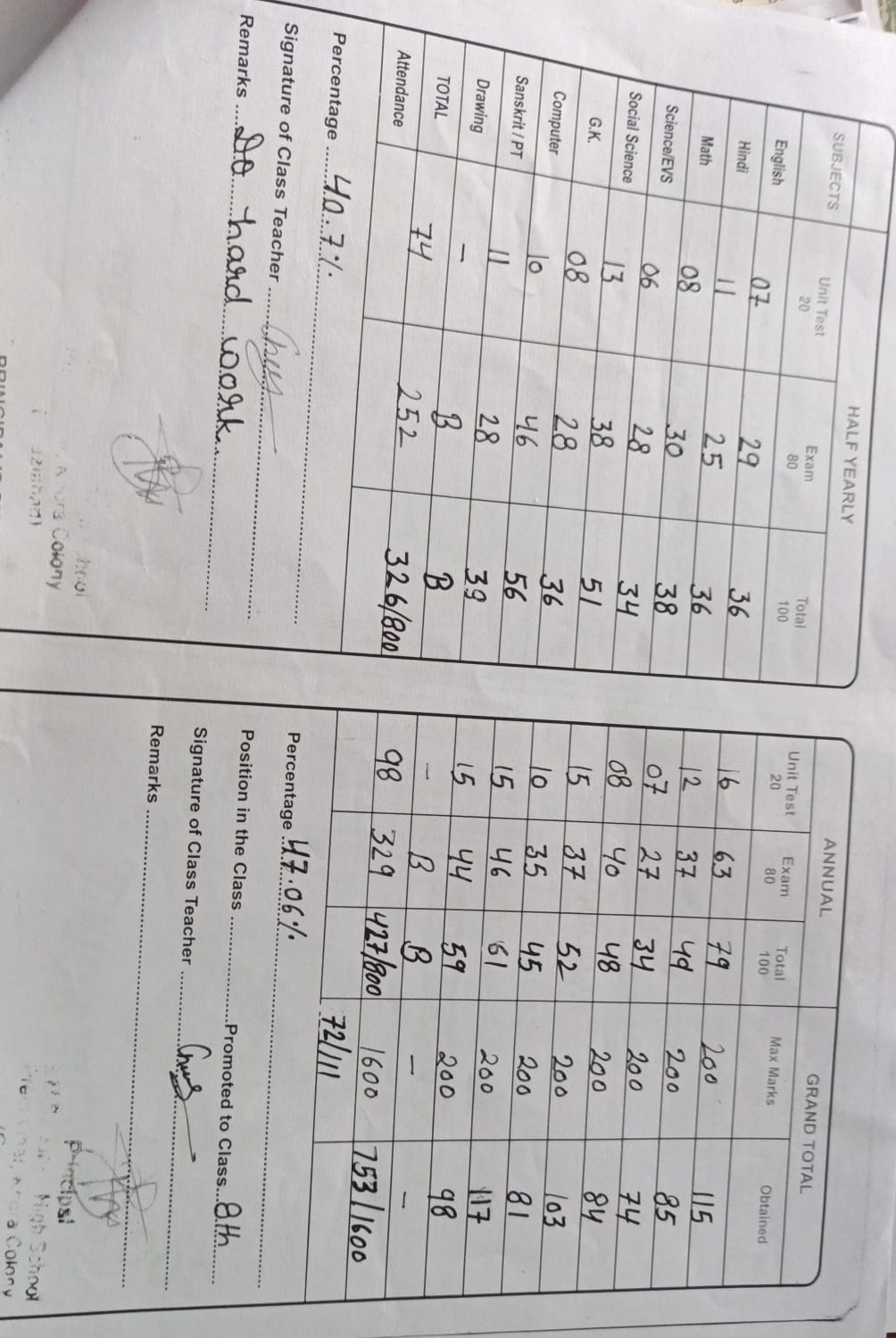 | Exam | Full Marks | Pass Marks | Marks Obtained |