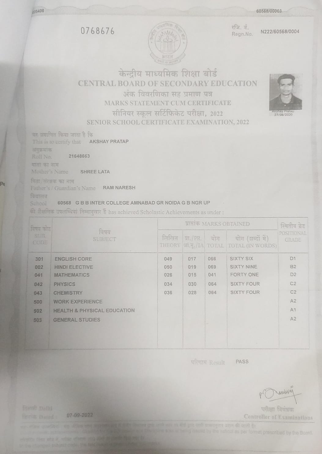| Exam | Full Marks | Pass Marks | Marks Obtained |