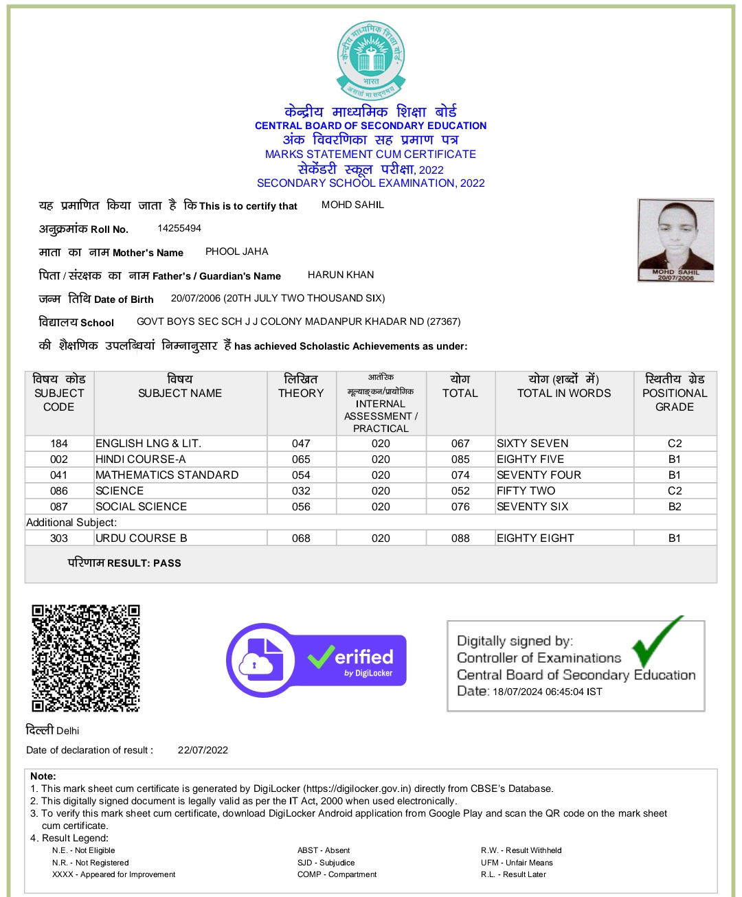 | Exam | Full Marks | Pass Marks | Marks Obtained |