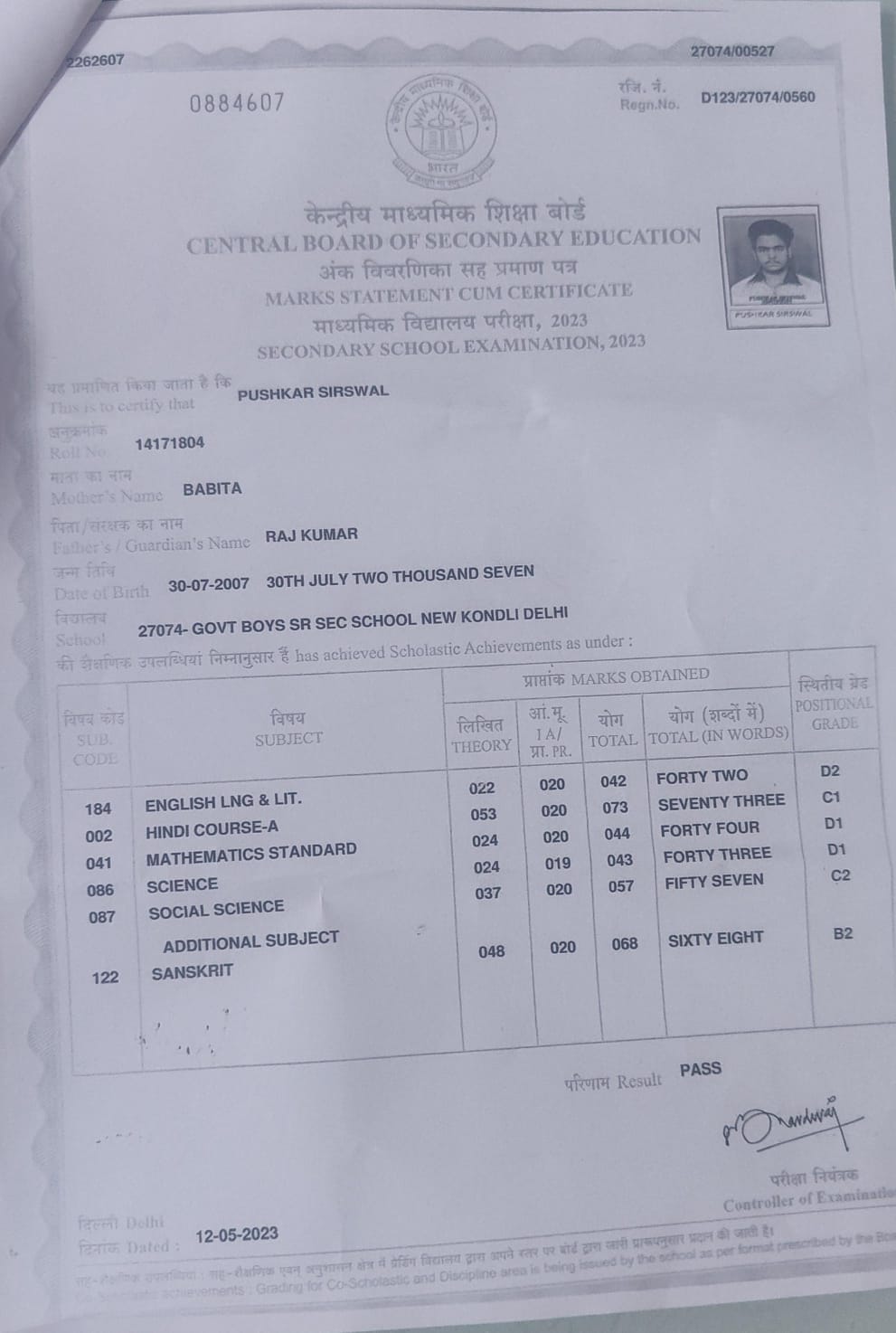 | Exam | Full Marks | Pass Marks | Marks Obtained |