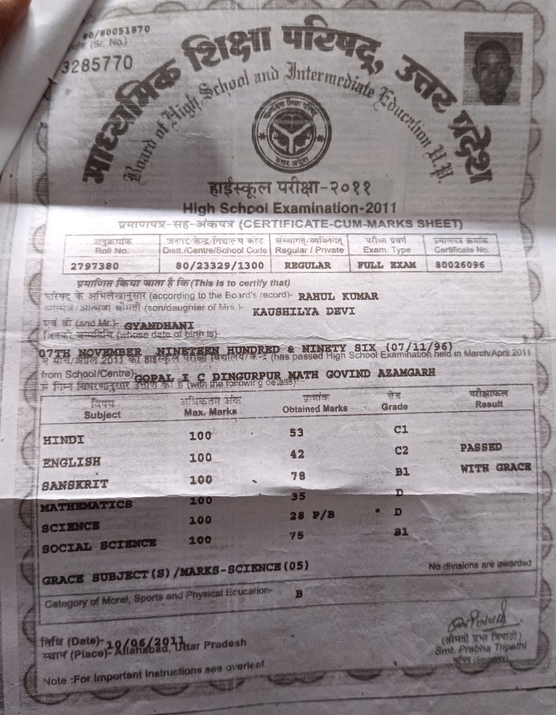 | Exam | Full Marks | Pass Marks | Marks Obtained |